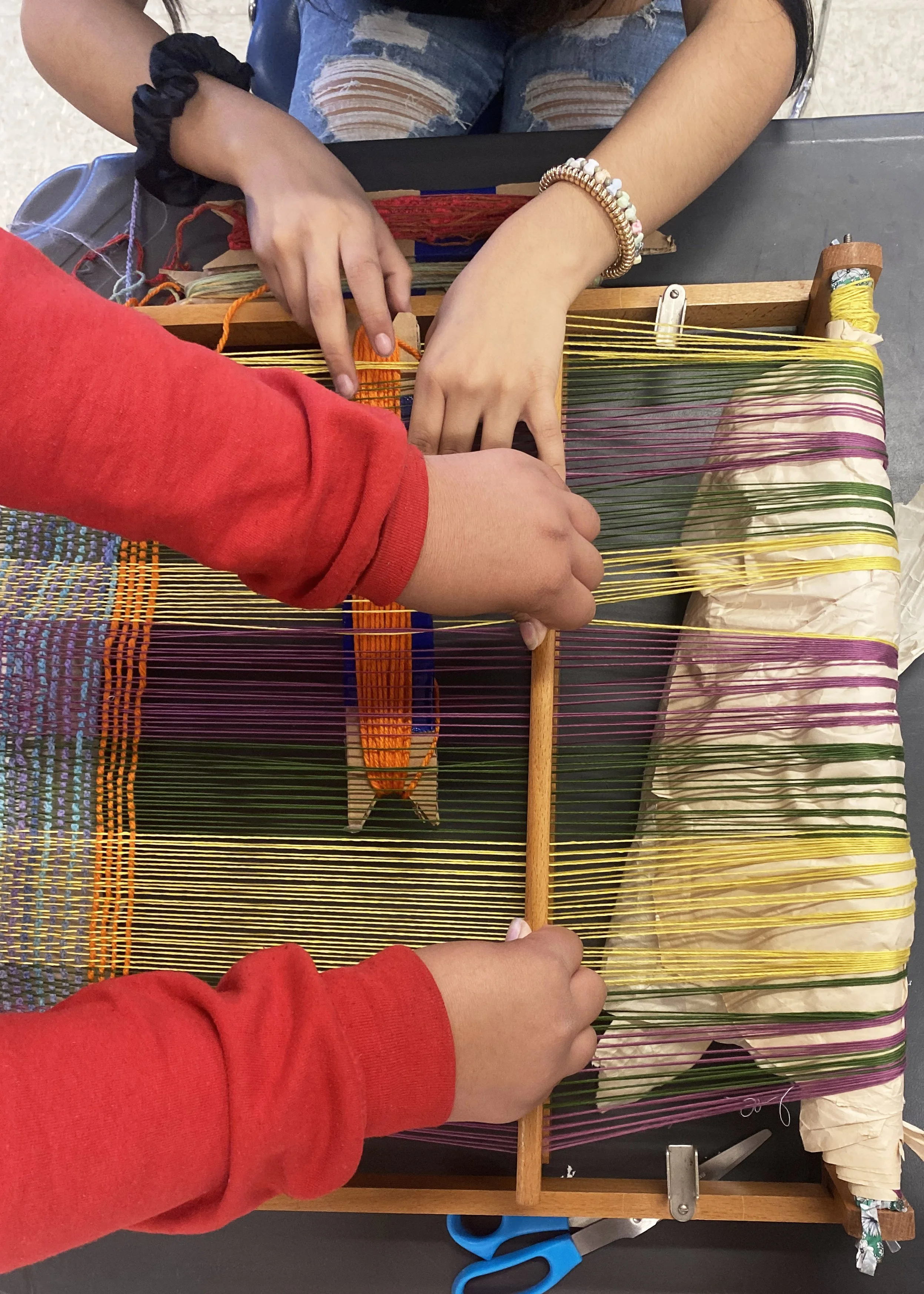 Collaborative weaving made with middle schoolers at the Ridgewood branch of the Queens Public Library,